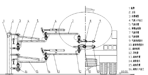 甲醛鶴管安裝在地面上,底部密閉裝卸車鶴管,法蘭接口朝側(cè)面與地面垂直。適用介質(zhì):液氨、液化氣、丙烯、丙烷等。